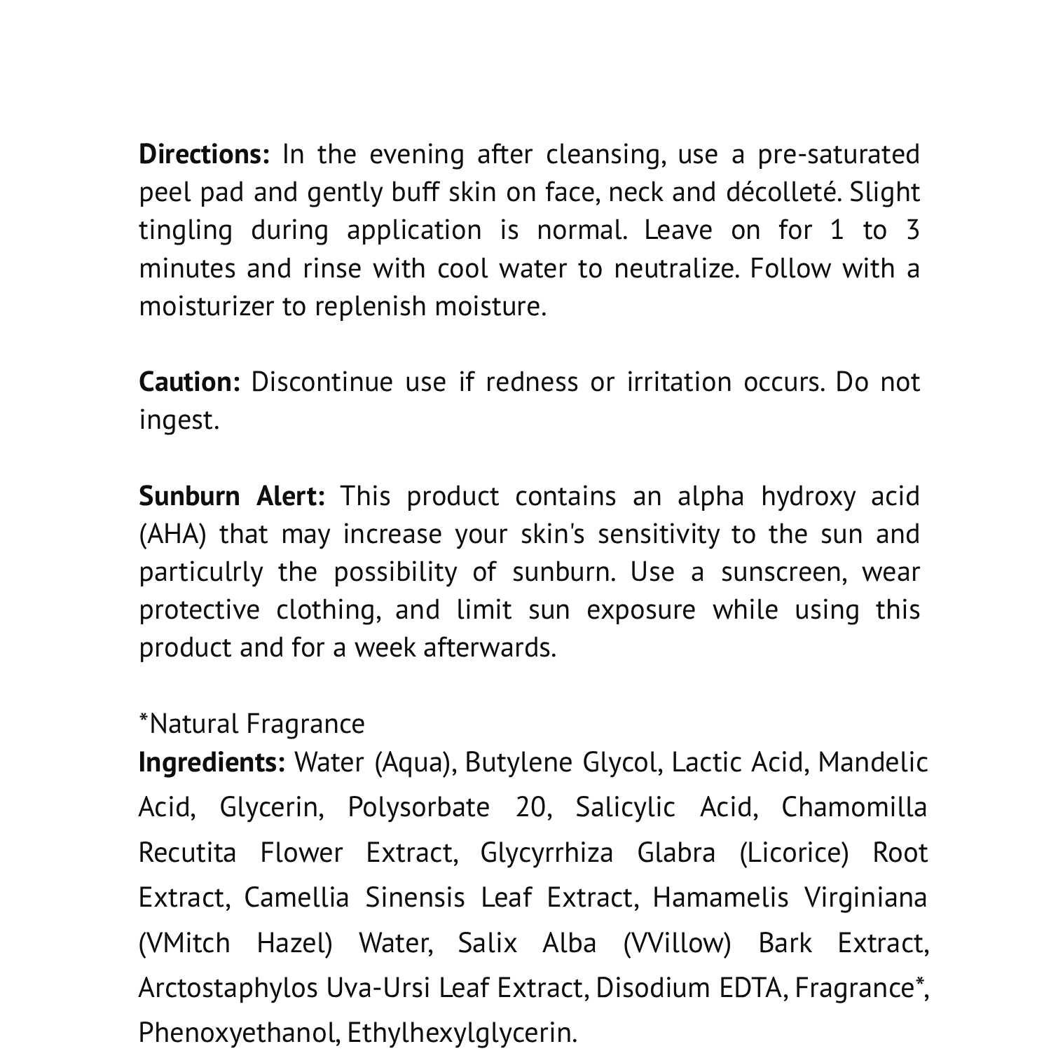 Achieve luminous skin with these triple-exfoliating pads. A concentrated blend of salicylic, lactic and mandelic acids sweep away dead skin that dulls the complexion, creating a bright, radiant glow. Reduce signs of aging by targeting fine lines and discoloration with these pads, as they leave skin appearing more vibrant.